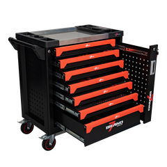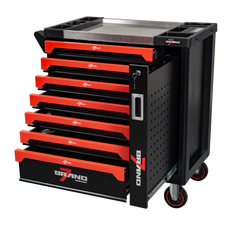 Der 7/7 BRAND7 Werkstattwagen bringt mit 8 Schubladen (7 vorne + 1 seitlich) – vollgepackt mit 512 präzise ausgewählten Werkzeugen – professionelle Ausstattung direkt in deine Garage oder Werkstatt.