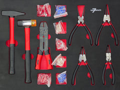 Circlip-Zangen, Abisolierzange, Mechanikhammer, Doppel-Ende-Hammer und Terminalblock-Zubehör – robustes Handwerkszeug für vielseitige Aufgaben.