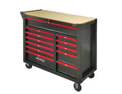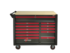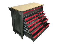 Verschiedene Schubladengrößen: Links, rechts, extra große Schublade für sperriges Werkzeug + 1 große Stauraumschublade