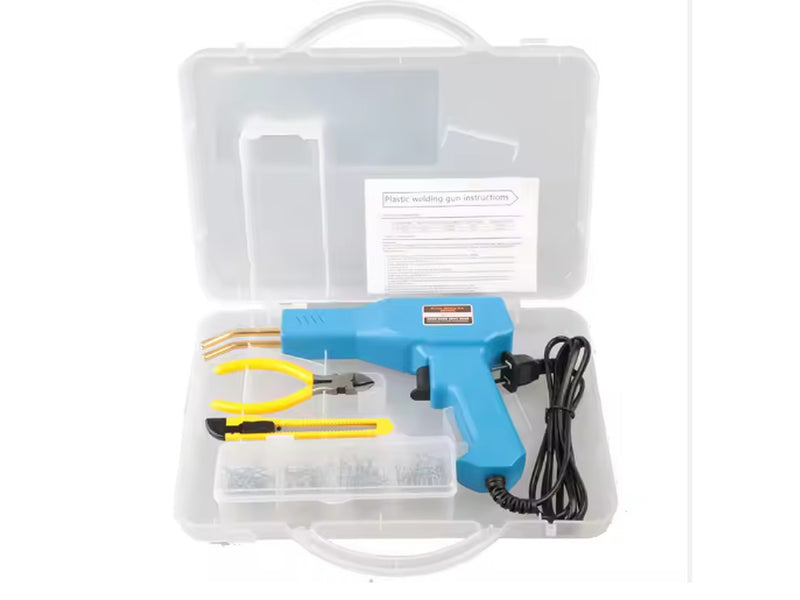 Das Set wird im praktischen Kunststoffkoffer geliefert und enthält neben der Schweißpistole auch verschiedene Reparaturklammern, Seitenschneider und ein Cuttermesser – damit Du direkt mit der Kunststoffreparatur starten kannst.