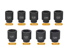 9 tiefgebohrte Stecknüsse für Achsmuttern von 29–38 mm