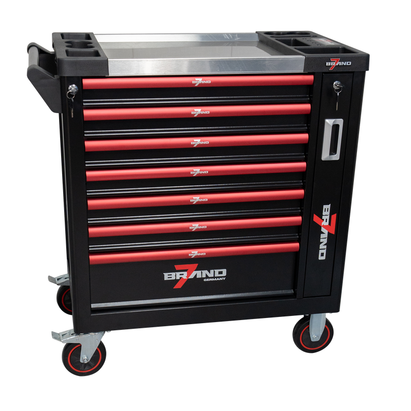 7/7 BRAND7 Werkstattwagen mit 309-tlg. Werkzeugsatz – 8 Schubladen, fahrbar & einsatzbereit